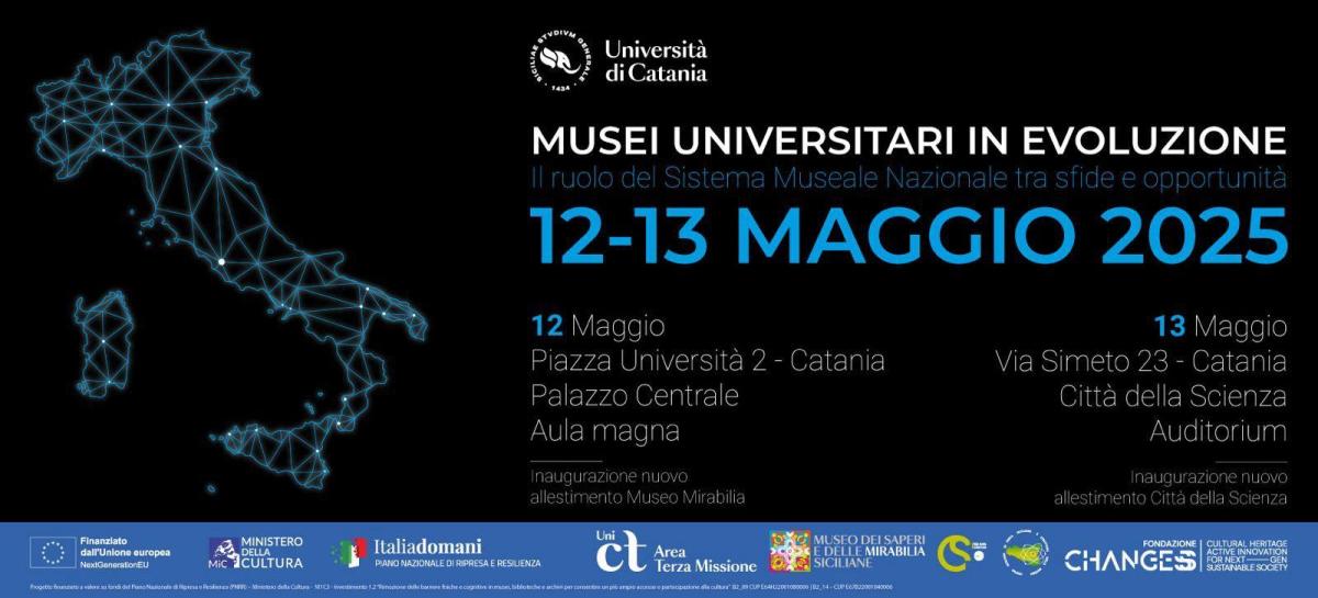 Lunedì 12 maggio alle 15, nell'aula magna del Palazzo Centrale d'Ateneo (piazza Università, Catania), e martedì 13 maggio nell'auditorium di Città della Scienza (via Simeto 23, Catania), si svolge la conferenza "Musei universitari in evoluzione: il ruolo del Sistema Museale Nazionale tra sfide e opportunità".